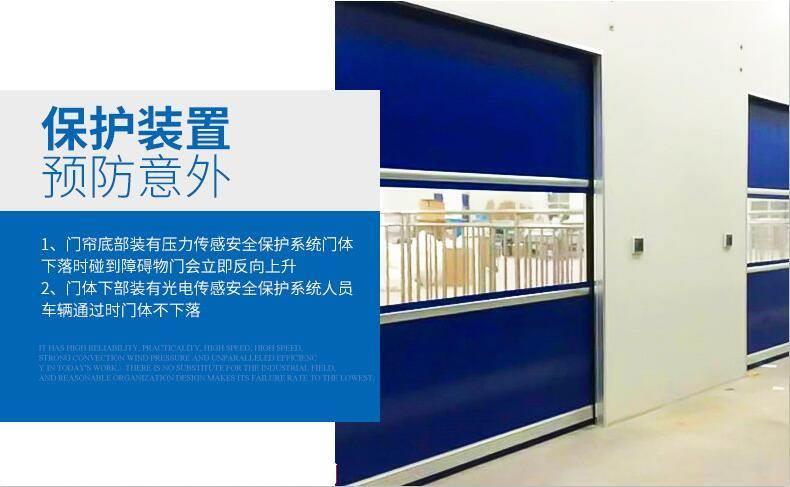 快速卷门属于自动化控制设备,由门框架,PVC门帘,驱动电机,控制系统组成。